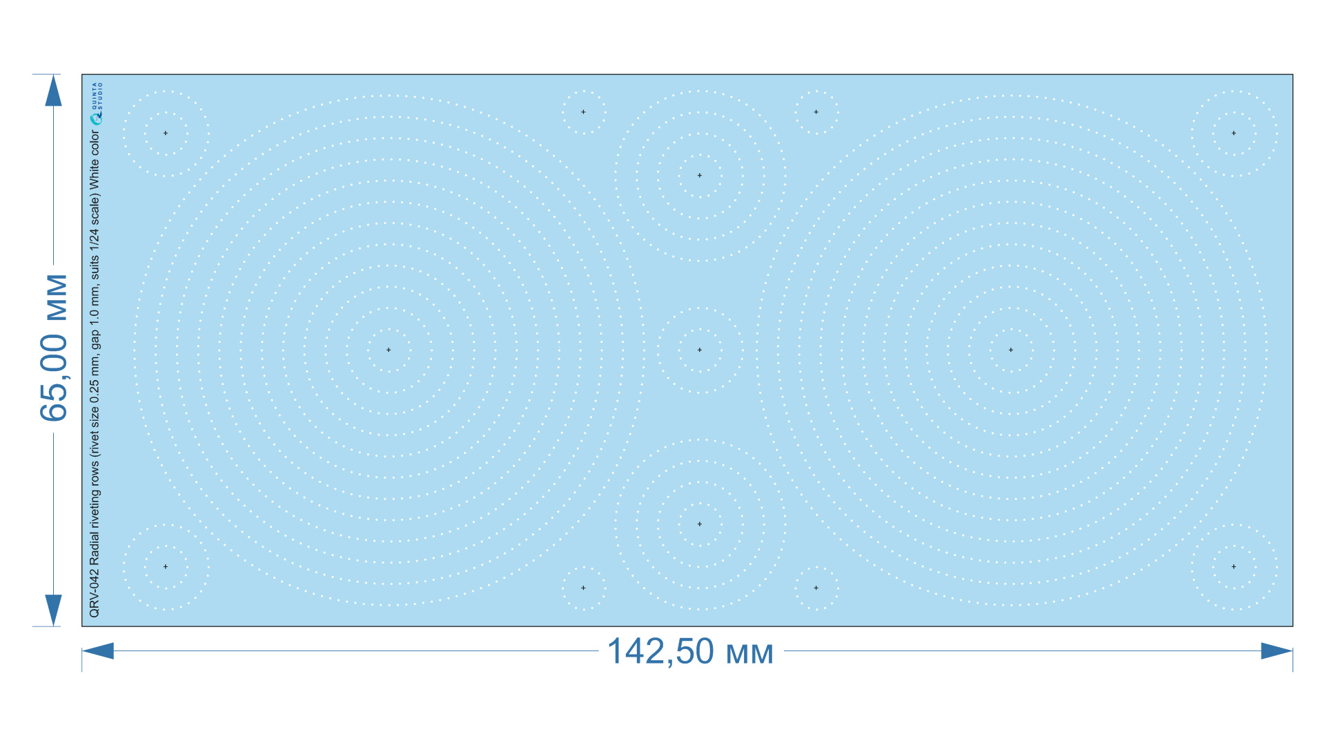 Radial riveting rows, White color rivet size 0.25 mm, gap 1.0 mm