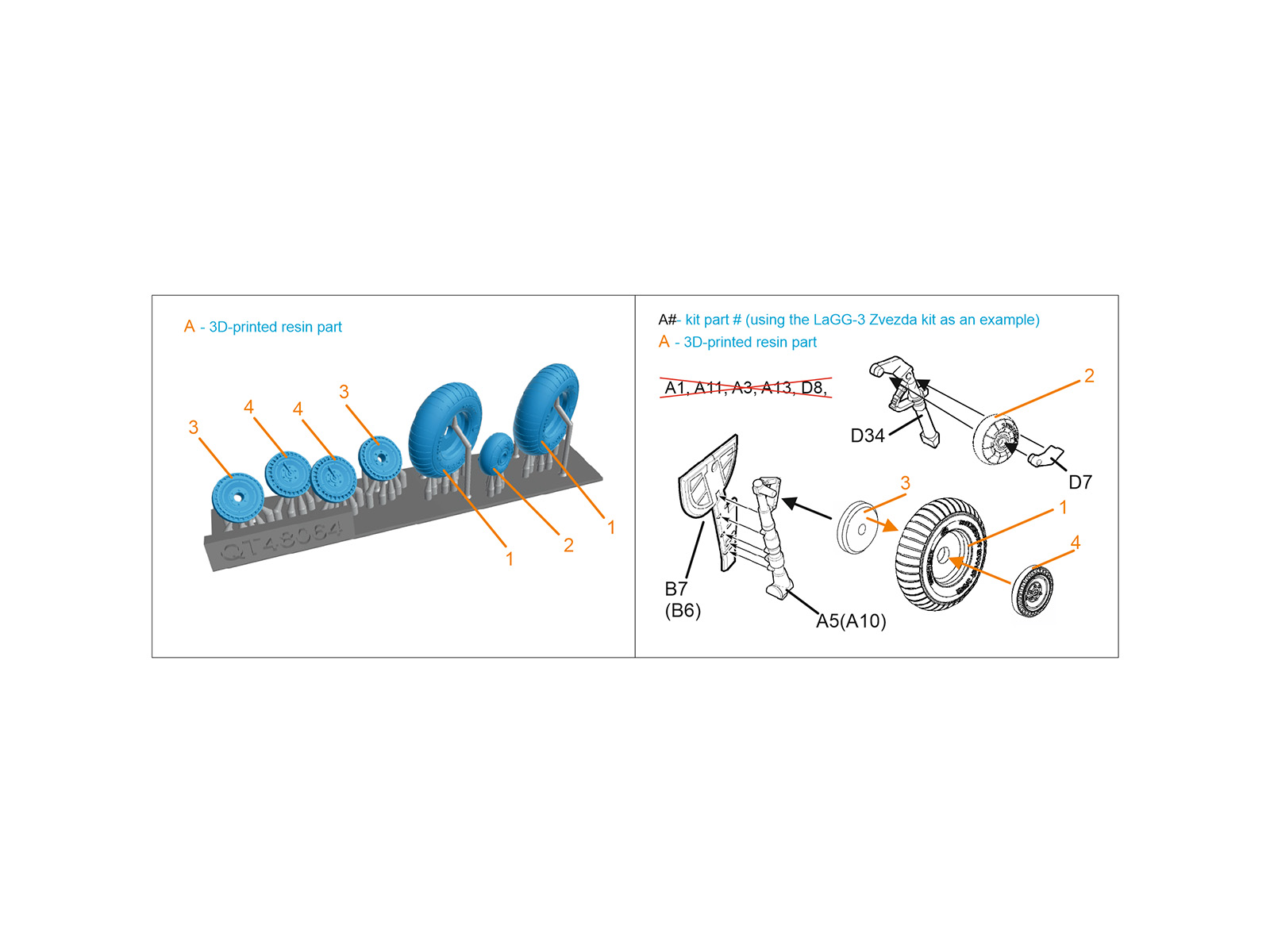 Quinta Studio - 1/48 Lavochkin LaGG-3, MiG-3, La-5/La-7/La-9, Yak-7/Yak-9, I-185/250 wheels radial tread 3D-Printed