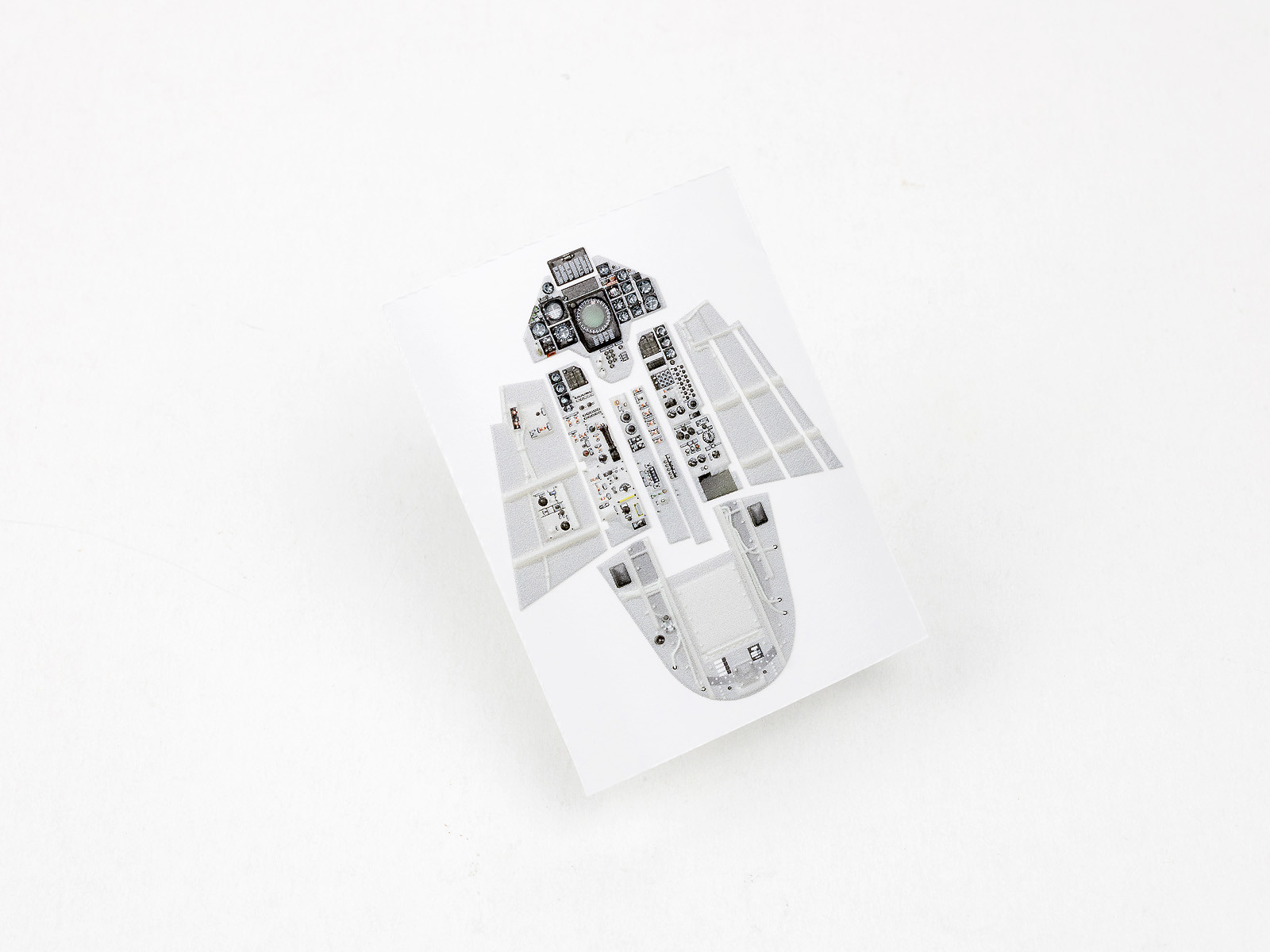 The product is suitable for upgrading model aircraft cockpits. It has a plastic, non-flat surface with a 3D effect. It is best glued with cyanoacrylate, but Pva or other glues can also be used. The product can be washed with both oil-based and acrylic paints and moderately ester-based paints. It can also be minimally bent or sanded.