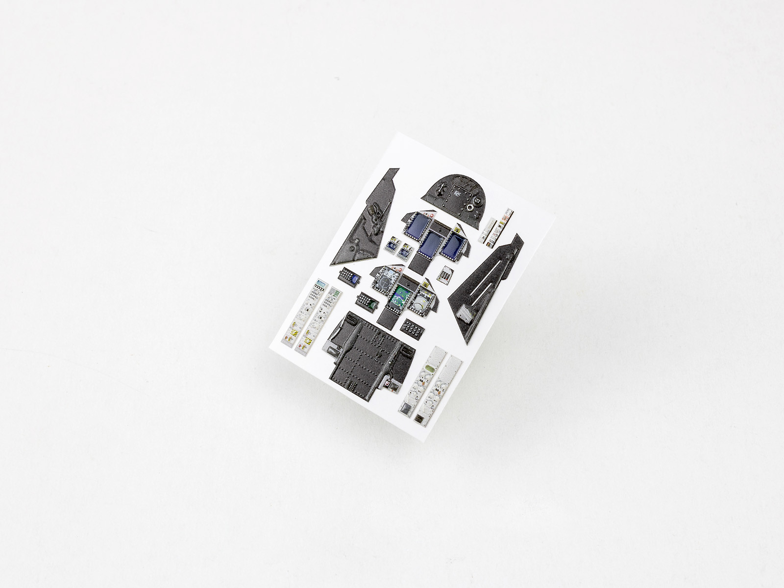 The product is suitable for upgrading model aircraft cockpits. It has a plastic, non-flat surface with a 3D effect. It is best glued with cyanoacrylate, but Pva or other glues can also be used. The product can be washed with both oil-based and acrylic paints and moderately ester-based paints. It can also be minimally bent or sanded.