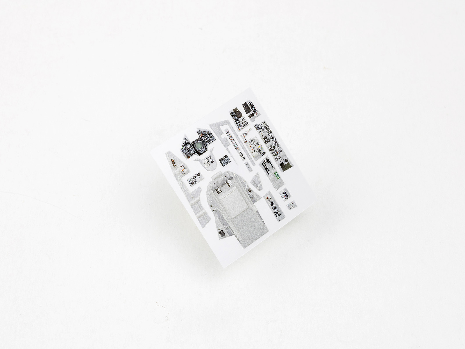 The product is suitable for upgrading model aircraft cockpits. It has a plastic, non-flat surface with a 3D effect. It is best glued with cyanoacrylate, but Pva or other glues can also be used. The product can be washed with both oil-based and acrylic paints and moderately ester-based paints. It can also be minimally bent or sanded.