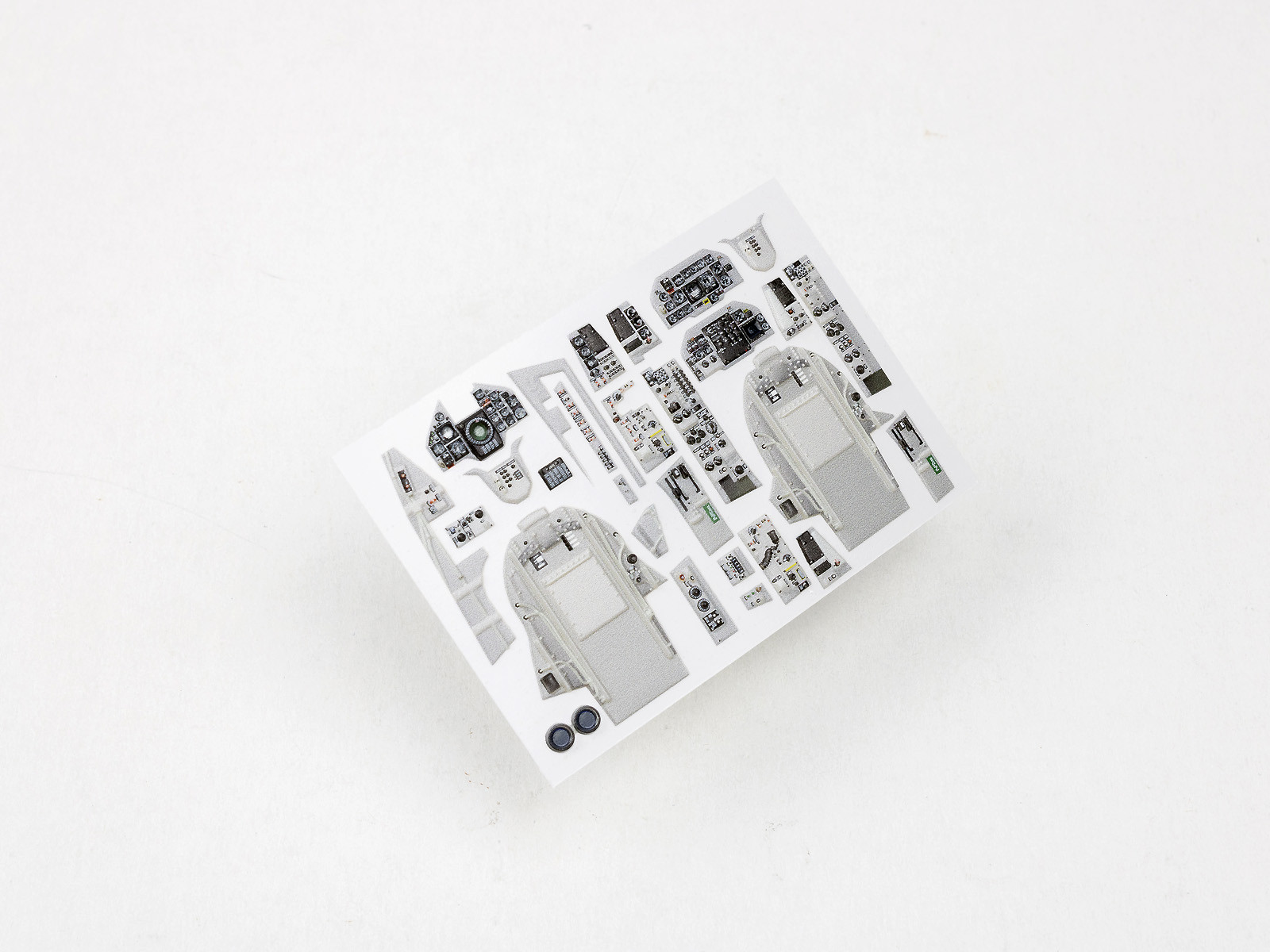 The product is suitable for upgrading model aircraft cockpits. It has a plastic, non-flat surface with a 3D effect. It is best glued with cyanoacrylate, but Pva or other glues can also be used. The product can be washed with both oil-based and acrylic paints and moderately ester-based paints. It can also be minimally bent or sanded.