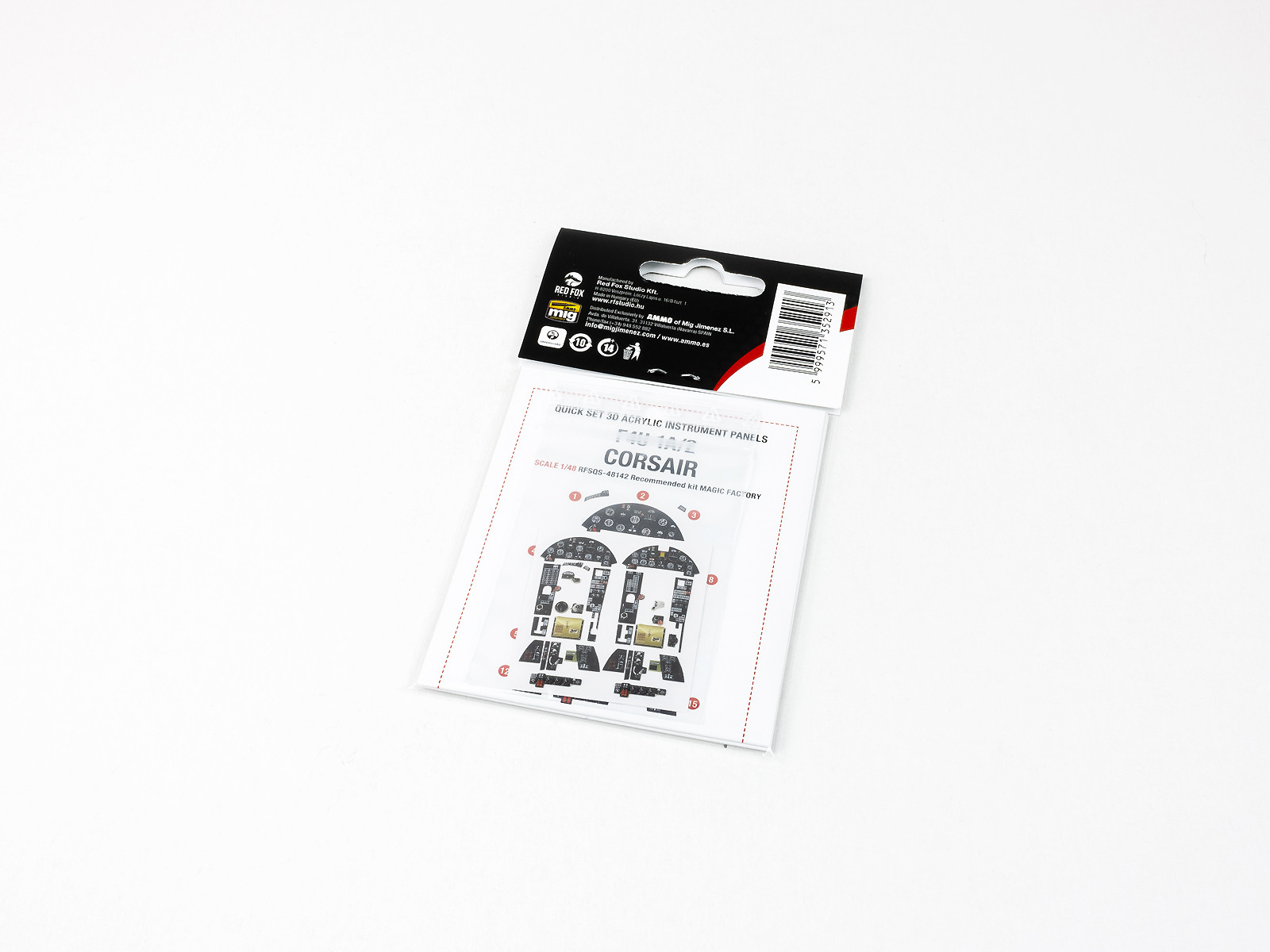 Red Fox Studio - 1/48 Vought F4U-1A/2 Corsair dual set for Magic Factory kit The product is suitable for upgrading model aircraft cockpits. It has a plastic, non-flat surface with a 3D effect. It is best glued with cyanoacrylate, but Pva or other glues can also be used. The product can be washed with both oil-based and acrylic paints and moderately ester-based paints. It can also be minimally bent or sanded.