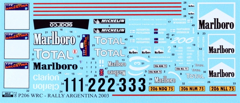 REJI MODEL - 1/24 Peugeot 206 WRC Rally Argentina 2003