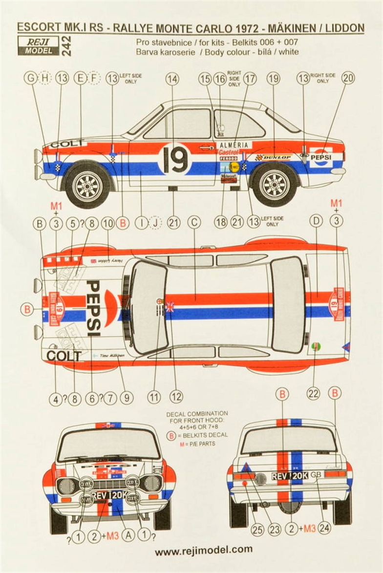 REJI MODEL - 1/24 Ford Escort Mk.I - Monte Carlo 1972 (decals & PE)