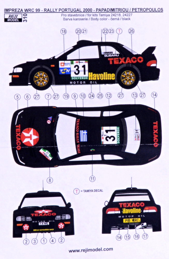 REJI MODEL - 1/24 Transkit Subaru Impreza WRC99 Portugal 2000 decal