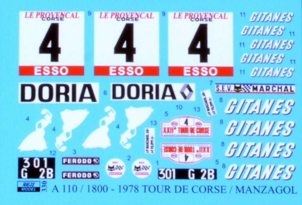 REJI MODEL - 1/24 Alpine A110 Tour de Corse 1978 (Manzagol) decal