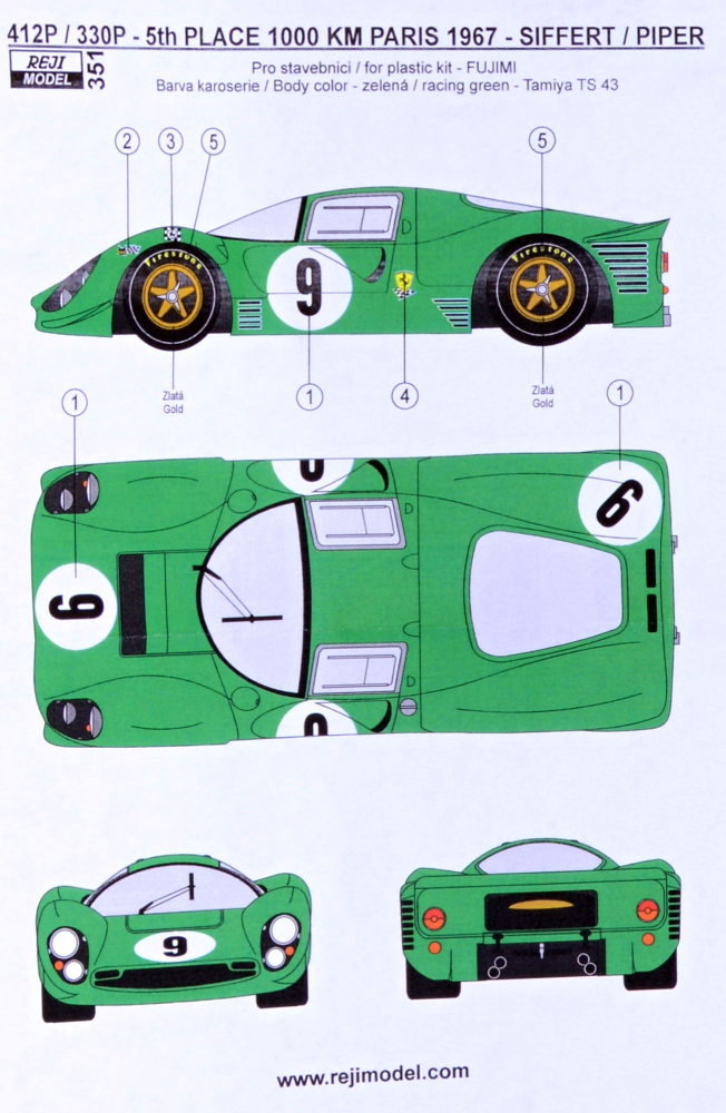 REJI MODEL - 1/24 Ferrari 412P (330P) 1000km Paris 1967 (decal)
