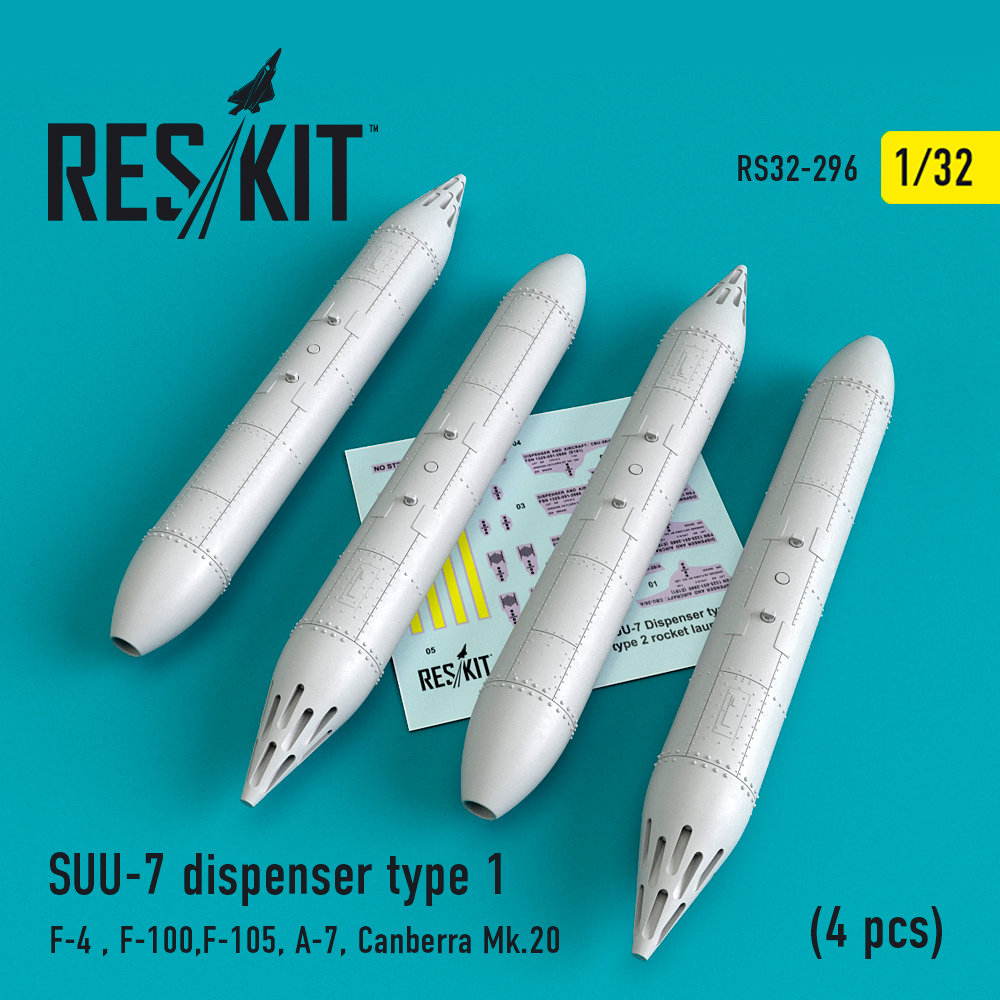 ResKit - 1/32 SUU-7 dispenser type 1 (4 pcs) (McDonnell F-4, North-American F-100, Republic F-105, Vought A-7, Canberra Mk.20)(for Tamiya and Trumpeter kits)
