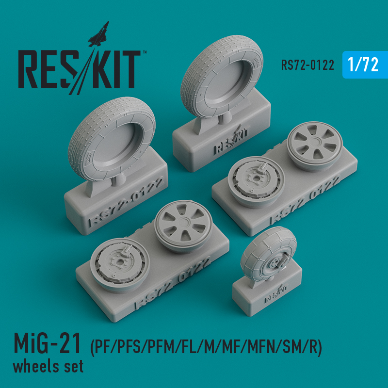 ResKit - 1/72 Mikoyan MiG-21PF/MiG-21PFS/PFM/MiG-21FL/MiG-21M/MiG-21MF/MiG-21MFN/MiG-21SM/MiG-21R) wheels set (for Bilek, Eduard, Condor Ukraine, Fujimi, Kopro (ex KP) R.V.Aircraft, Zvezda kits)