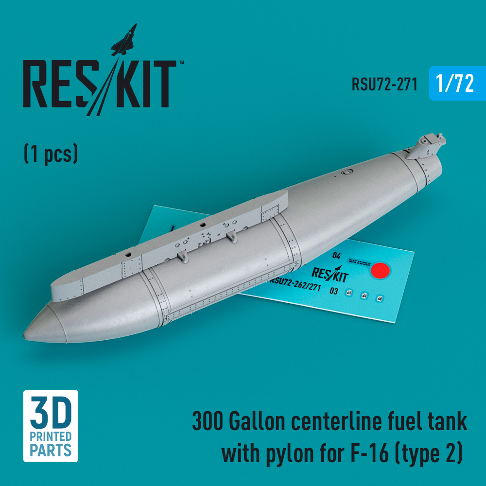 RESKIT - 1/72 300 Gallon centerline fuel tank with pylon F-16 type 2