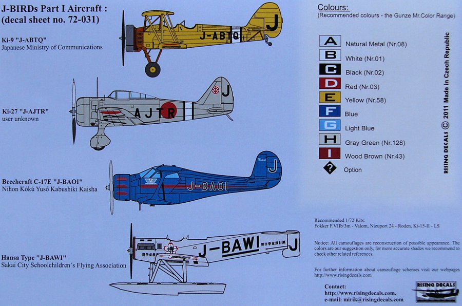 Rising Decals - 1/72 J-Birds Part II. (7x camo schemes)