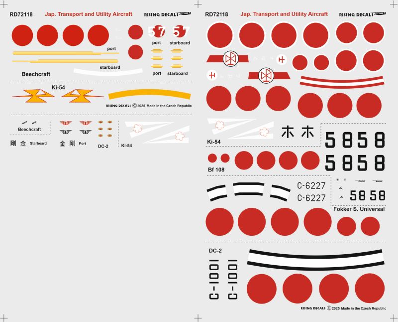 RISING DECALS - 1/72 Decal Japanese Transport and Utility Aircraft