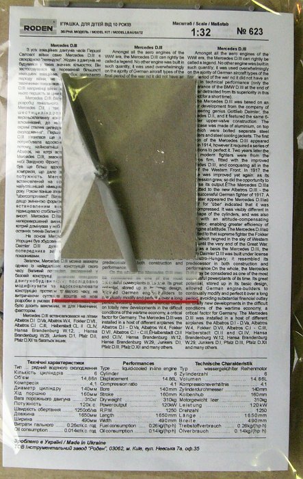 Roden - 1/32 Engine Mercedes D.III 160 h.p.