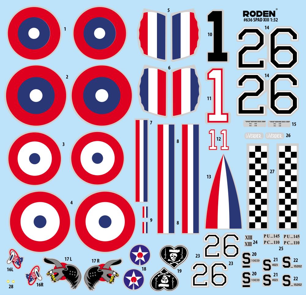 RODEN - 1/32 SPAD XIII c1 French WWI fighter (3x camouflages)