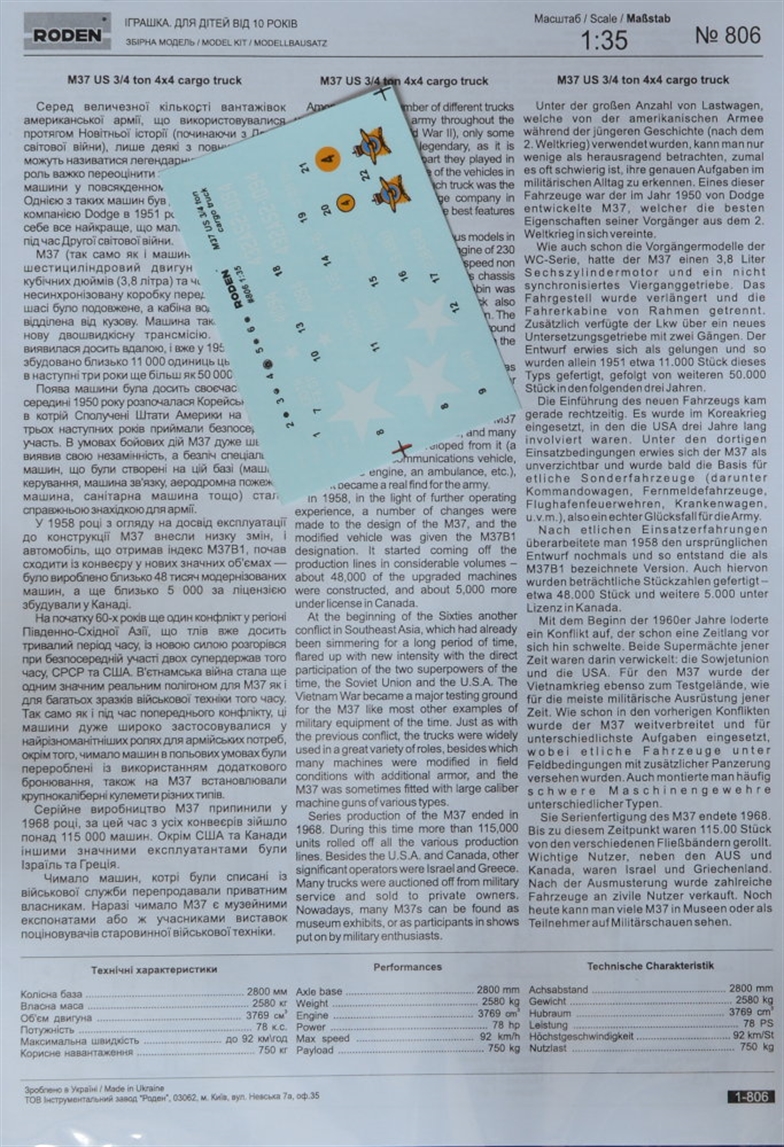 1/35 M37 US 3/4 ton 4x4 cargo truck