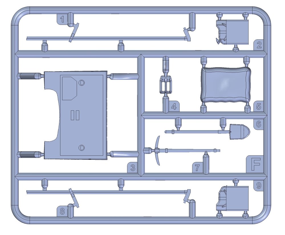 Additional parts for radio equipment cabin, roof rails, shovel etc. Choice of 2 registration numbers on the decal sheet for German military units in Ukraine, July 1941, & North Caucasus 1942.
