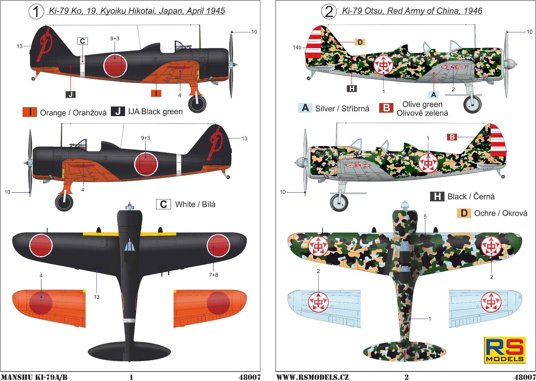 RS Models - 1/48 Manshu Ki-79A/B Decals for Japan x 3, Red Army of China x 1