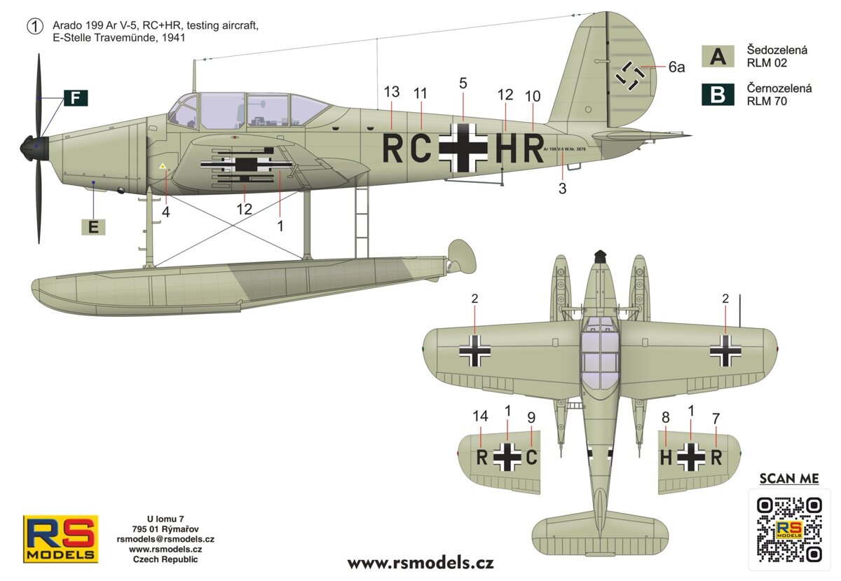 RS Models - 1/72 Arado Ar-199V-5 1 decal v. for Luftwaffe