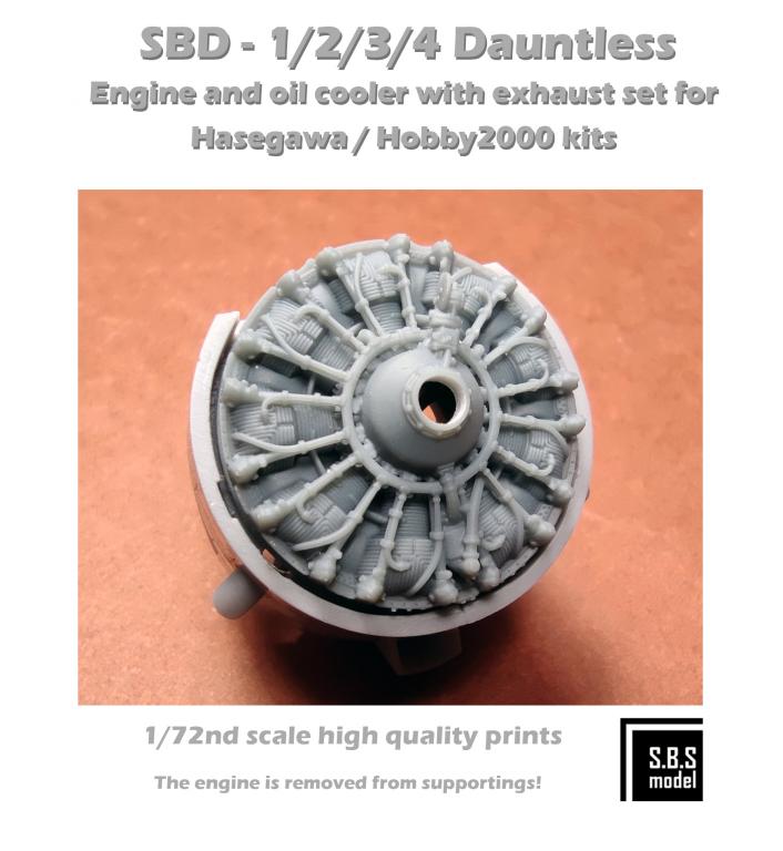 SBS Model - 1/72 Douglas SBD-1/SBD-2/SBD-3/SBD-4 Dauntless engine, oil cooler and exhaust set (3d-printed) (for Hasegawa and Hobby 2000 kits)