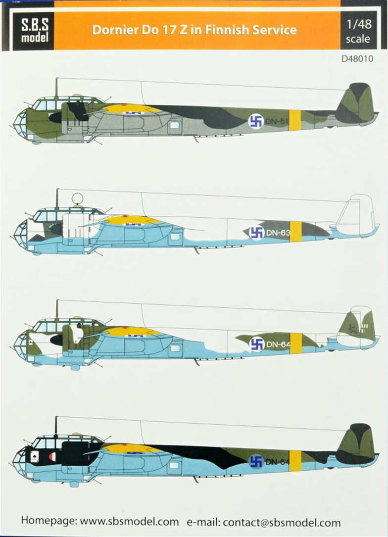 SBS MODEL - 1/48 Decal Dornier Do-17 Z in Finnish service