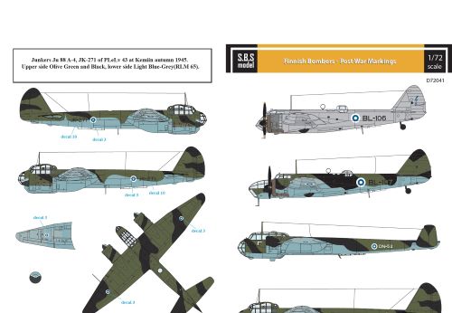 SBS MODEL - 1/72 Decal Finnish Bombers Post War Markings