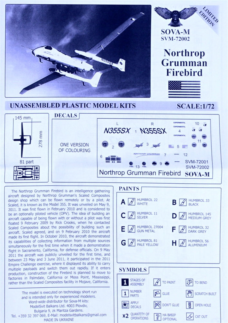 1/72 N. Grumman Firebird OPV with reconn.containers