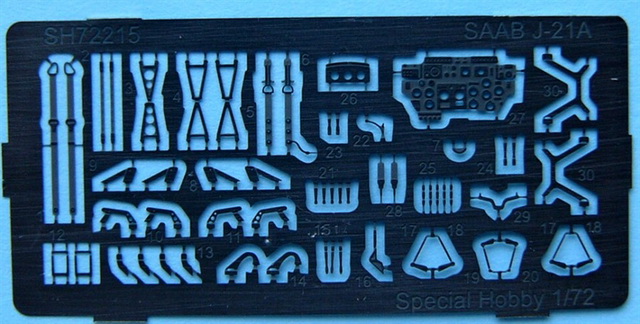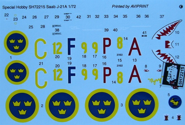 Special Hobby - 1/72 Saab J-21A During the Second World War, Sweden sought to ensure its neutrality, besides other means, also through a powerful air force. The Flygvapnet (Swedish Air Force) ordered 264 Seversky P-35A US-made fighter aircraft, designated the J-9 in Sweden of which were 60 delivered and also the Vultee Vanguard, to be designated the J-10, of which were none delivered. However,after the US was drawn into the war by the Japanese attack, the US government imposed an embargo on further weapons exports and so Sweden was left with the necessity to take care of its future armament itself. During the war, Sweden managed to design and introduce into service two indigenous fighter types. Apart from the downright auxiliary Ffvs J-22, it was the Saab J-21 which was that company's first fighter type. Its designer, F.Wanstrom created a machine of unorthodox construction with two tail booms, a nose-type undercarriage and a pusher engine. The machine offered a perfect view forward to its pilot, the armament was conveniently placed in the nose section, the manoeuvrability was excellent as was the ground handling due to the nose type landing gear. There were some disadvantages too, though, namely problems with cooling the power unit which were synonymous with the type all along its flying career. The first J-21A-1 production machines went to serve with F-9 wing only after the war in Europe had come to the end. The next production batch machines of the J-21A-2 version differed by the armament used and they were operated by wings F-12 abd F-15. The final batch was manufactured in the ground-attack version in 1948 and was known as the A-21A-3. In the fighter role, the J-21 became obsolete rather quickly, but its excellent manoeuvrability at low altitudes and perfect stability during fire made the type a perfect platform for ground attack roles. The J-21A airframe was also the basis for Sweden's first jet engine-powered type, the J-21R. At first, it was expected that placing the licence-built De Havilland Goblin jet engines into the aiframe should be without any major trouble, but soon it became clear that the improvements were going to be so massive that only about 50% of the airfame can be taken from the piston type. Despite that the new J-21R was very similar to its older sibling. A total of 299 piston engine powered J-21 was built plus 120 more of the J-21R type.