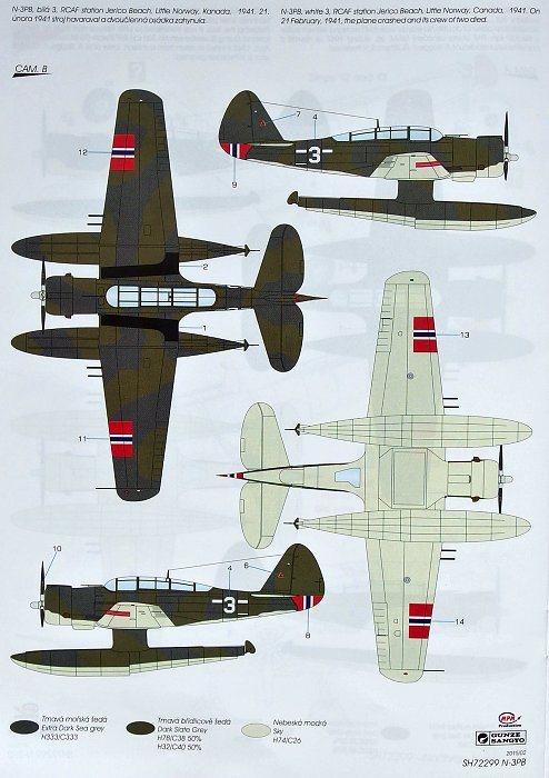 This offering comes with exactly the same runners and set of brass parts as the previous model of the Northrop N-3PB (SH72250). The difference is in the decal sheet which now features three different machines that were operated in Little Norway and flew with Norwegian markings in the form of stripes in Norway's national colours.