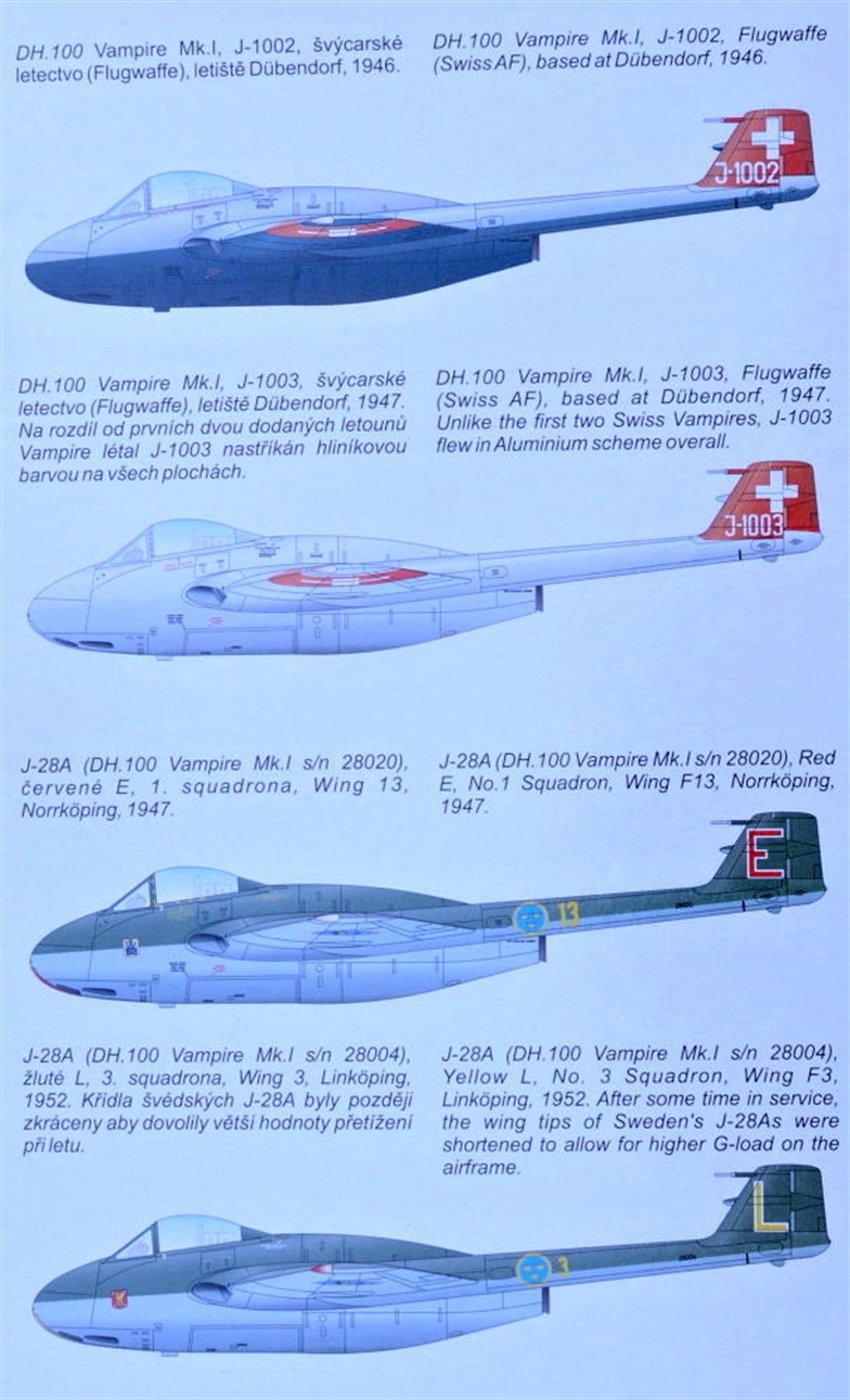 Special Hobby - 1/72 de Havilland DH.100 Vampire Mk.I Development of a jet fighter later to be named the Vampire began in 1941 and related closely with the development of the H-1 jet engine, for which the engine section of de Havilland company was responsible. The engine was later to be known under its new name Goblin and its development turned out to be very successful. The Vampire was therefore ordered under Air Ministry specification E.6/41 calling for an experimental machine able to be converted to a fighter plane. The design of the plane was fully adjusted to the new engine, which resulted in overall tiny dimensions of the plane, very low undercarriage and the tail planes being carried by two slim tail booms. Unlike the later marks of the aircraft, the plane s wing featured rounded tips. The first prototype, unofficially named the Spider Crab, flew for the first time on September 20, 1943 with G. de Havilland Jr at the controls. The trials were a success and an order for first 120 planes was placed in May 1944 and was continuously increased. The production planes were also licence-built by English Electric because de Havilland was much too busy producing the Mosquito. The original name Spider Crab, however, was rejected by the RAF and changed to the Vampire Mk.I. First operational squadrons got their Vampires in May 1945, but not early enough to take part in the war. The development continued with further versions, besides those with the DH Goblin engine, there were also versions with the Nene powerplant (airfames built in Australia), two-seat night fighter versions, two-seater training versions or even naval fighter versions (Special Hobby produce the Mk.3 Vampire, model PartSH72279 and the Mk.5 Armée de l'Air & Aéronavale, PartA117). The Vampire Mk.I also became the first jet aircraft to be used by two neutral countries, Sweden and Switzerland. Our model kit brings in total four marking options of these two neutral countries. Two of the featured airframes bear colours of the Swiss Flugwaffe, white crosses on red background. Machine J-1002 flew in Medium Sea Grey over PRU Blue whilst machine J-1003 was silver dope overall. In Sweden, the Vampire was known as the J-28A and got green camouflage above and grey below. The two Swedish machines were used by different units, the first options carries Red E tail code of No.1 squadron / Wing F13, the other has Yellow L of No.3 Sqn/Wing F3. The model comes on three sprues of grey injection styrene and one frame of clear canopy and wingtip parts.