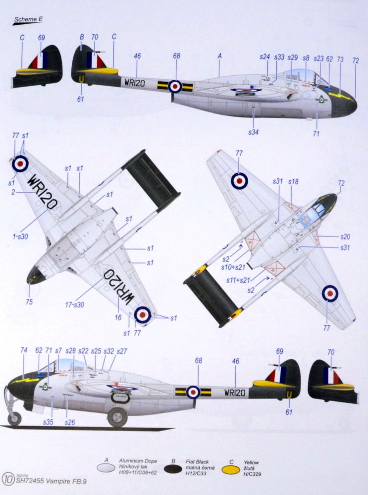 Special Hobby - 1/72 De Havilland DH.100 Vampire FB.Mk.9 'Tropicalised Fighter-Bomber' Sometimes this autumn, Special Hobby will be releasing two new 1/72 Vampire reboxings. Along with the 'long-winged' Mk.3 Vampire, you will be also tempted by a version we have not released before, the tropicalised, fighter bomber FB Mk.9 Vampire. As you will have guessed from the name, these Vampires had been fitted with an air-con unit in a special housing on the starboard side of the fuselage nacelle, just front of the air intake, which made them suitable for service in hot areas. The boxart below is another Cgi masterpiece by M.Reinis.