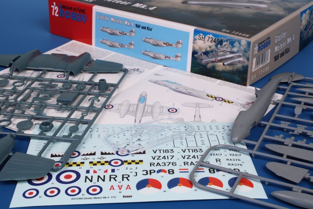 Special Hobby - 1/72 Gloster Meteor Mk.4 The Mk.4 Meteor jet was the first post war version of this twin engined jet and became a front-line fighter of the Raf as well as the air forces of Belgium and the Netherlands. Our model kit comes on two styrene sprues, one with clear parts and also offers a sheet of decals with markings for three Raf machines and one of the Dutch air force. Two of the British options have interesting connection with our country, then called Czechoslovakia, as they used to be flown by Miroslav Miro Liskutin and Charles Eagan Lamberton / Karel Lechner, who both first fled Czechoslovakia to fight the Nazis and a few years later were forced to flee for a second time, now by the new communist regime.