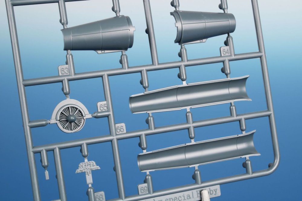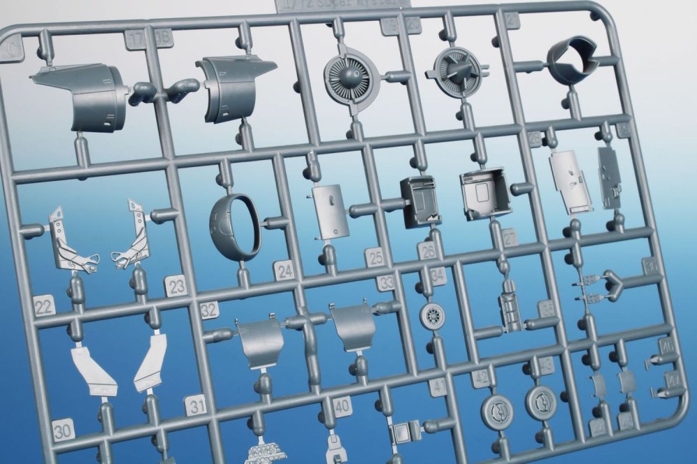 SMB-2 jets were also successfully exported to Israel where they proved against the overwhelming Arab superiority. And as in France, when the Israelis finally got their Mirages, the Super Mysteres were re-delegated to the fighter bomber role. Later in their career, the Israeli SMB-2s had their engine replaced with a US-made unit.When struck off service, the remaining SMB-2s were sold off to Honduras. Our model kit contains parts for both engine options. The decal sheet originates in our SH72417 release enabling modellers to build one of two French machines (both with the original Atar 9B jet) or a Honduran option with the lon ger tail section housing the Pratt and Whitney J52 engine. The kit also contains a resin cast ejection seat for the Honduran Super Mystere