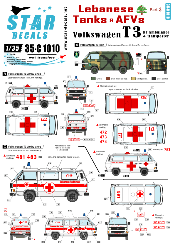 Star Decals - 1/35 Lebanese Tanks & AFVs #3. Volkswagen T3 ambulance and transporter