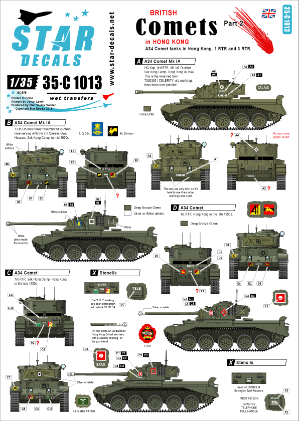 Star Decals - 1/35 British Comets #2. Comets in Hong Kong. A34 Comet