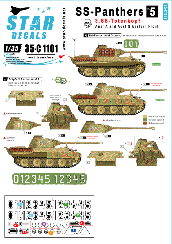 Star Decals - 1/35 SS-Panthers # 5. 3. SS-Totenkopf. Panther Ausf A and Bef-Panther Ausf G. Ostfront 1944-45.