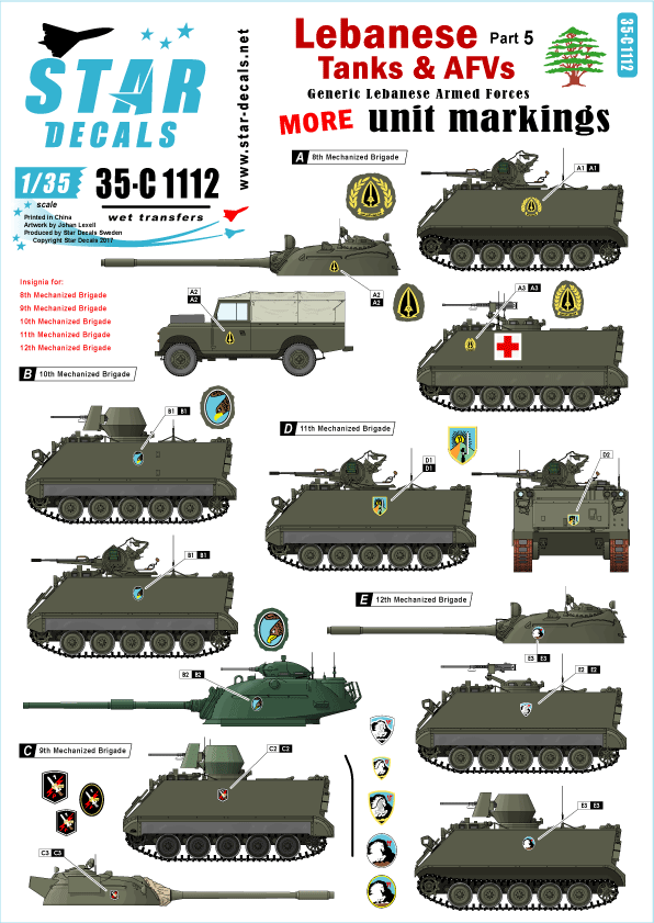 Star Decals - 1/35 Lebanese Tanks & AFVs Part 5 More generic unit insignias