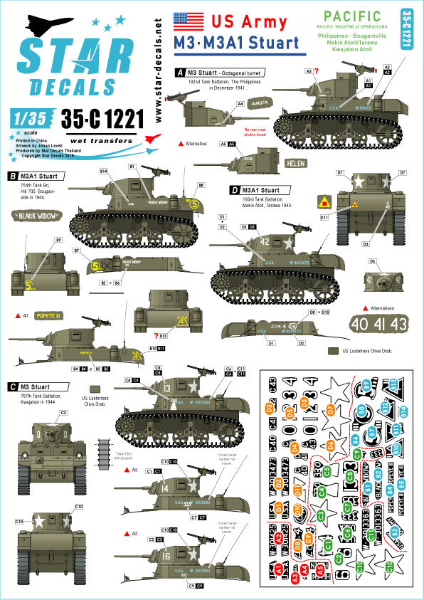 Star Decals - 1/35 M3 and M3A1 Stuart US Army.