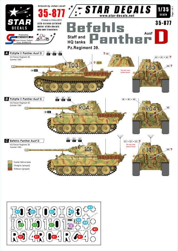 Star Decals - 1/35 Befehls Panther Ausf.D Staff and HQ tanks, Pz.Regiment 39 [Pz.Kpfw.V Ausf.D Panther]