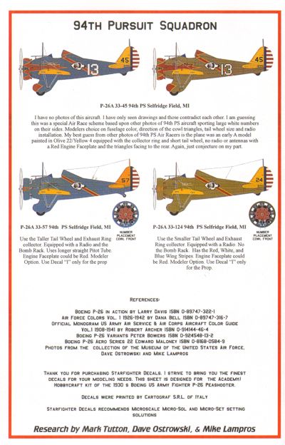 Starfighter Decals - 1/48 Boeing P-26 Pt.2 1st Pursuit Group