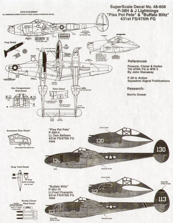 Superscale - 1/48 Lockheed P-38H (2) White 130 Lt Don Bellows 'Piss Pot Pete, 113 Lt Champlin 'Buffalo Blitz'431 FS/475FG