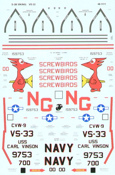 Microscale - 1/48 Lockheed S-3B Viking (1) 159753 NG/700 VS-33 Screwbirds Uss Carl Vinson