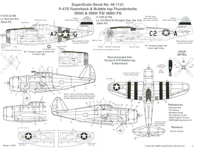 Microscale - 1/48 Republic P-47D Thunderbolt Thundebolt (2) 'Razorback' 226130 A7-G Lt R.Kik, 395 Fs `Wild Bene/Fearless Dick' D-Day stripes, Bubble top 226939 C2-A `Arkansas Blitz' Lt/Col Paul Douglas 396th Fg