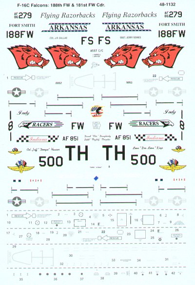 Microscale - 1/48 Lockheed-Martin F-16C (2) 60279 `Flying Razorbacks' 188th Fw Fort Smith Arkansas, 851500 `Indy 500 Racers' 181st Fw Indiana