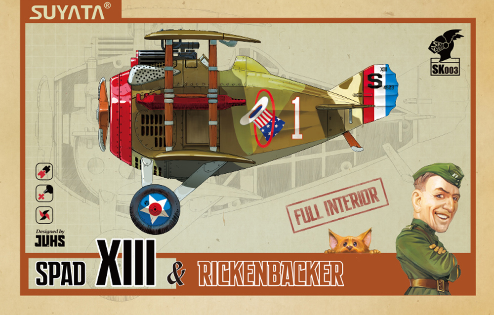 SUYATA - French-built WWI biplane fighter aircraft with American fighter ace pilot figure.