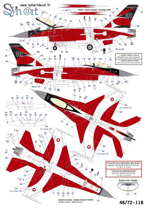 Syhart - 1/48 General-Dynamics F-16AM Falcon E-191 Dannebrog 800 ar Royal Danish Af 2019. The flag of Denmark (Dannebrog) is the oldest national flag of the world, according to the legend it would have appeared in the sky on June 15, 1219 during a battle.