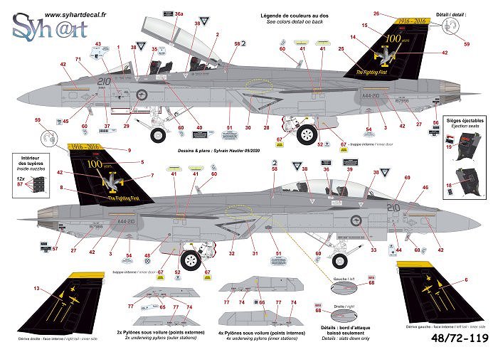 Syhart - 1/48 F/A-18F Super Hornet A44-210 100 Years 1 Squadron Raaf 2016. The No 1 Squadron of Royal Australian Air Force (RAAF) was formed in 1916 at Point-Cook (Victoria) with no aircraft. It started the missions in Egypt, Palestine and Sinai during the World war I. The squadron re-raised during World war II as maritime patrol squadron.