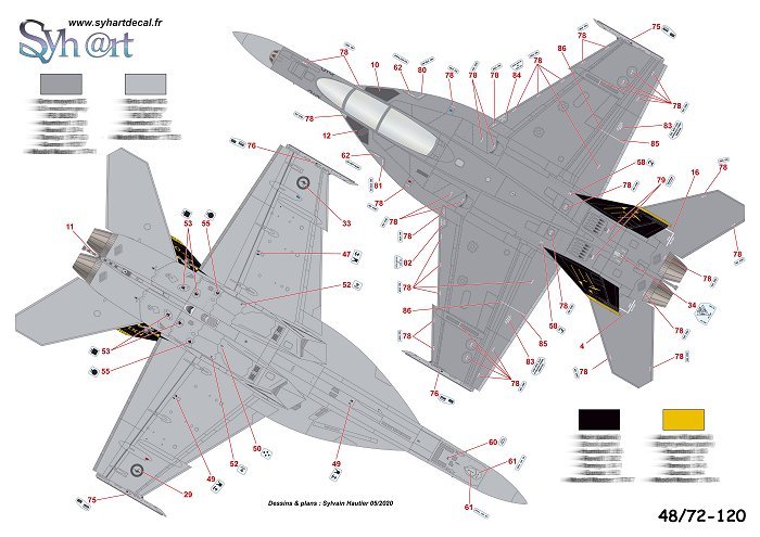 For the Century of the No 1 Squadron on 2016, it's one of these Super-Hornet, who received the special paint, The A44-210 tails was black painted with the yellow silhouettes of former aircrafts flown by the squadrons on inner sides, when the outer sides are orned with the insigna of the squadron No 1 since 100 years.