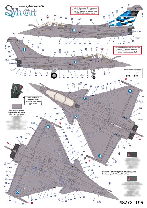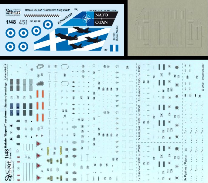Syhart - 1/48 Dassault Rafale Eg Part451 'Ramstein Flag 2024' Hellenic Air Force Andraviada AB. During the Nato exercice 'Ramstein Flag 2024' organised from 30 september till 11 october 2024, the Hellenic Air Force Rafale Eg 451 wore this temporary special marking on the left side of the tail, presented at the Andravida base alongside with a USAF F-35A.