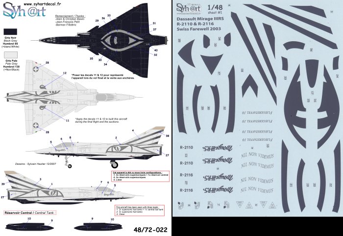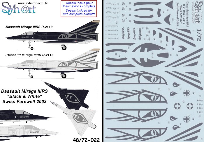 Syhart - 1/72 Mirage IIIRS R-2110 & R-2116 Black & White